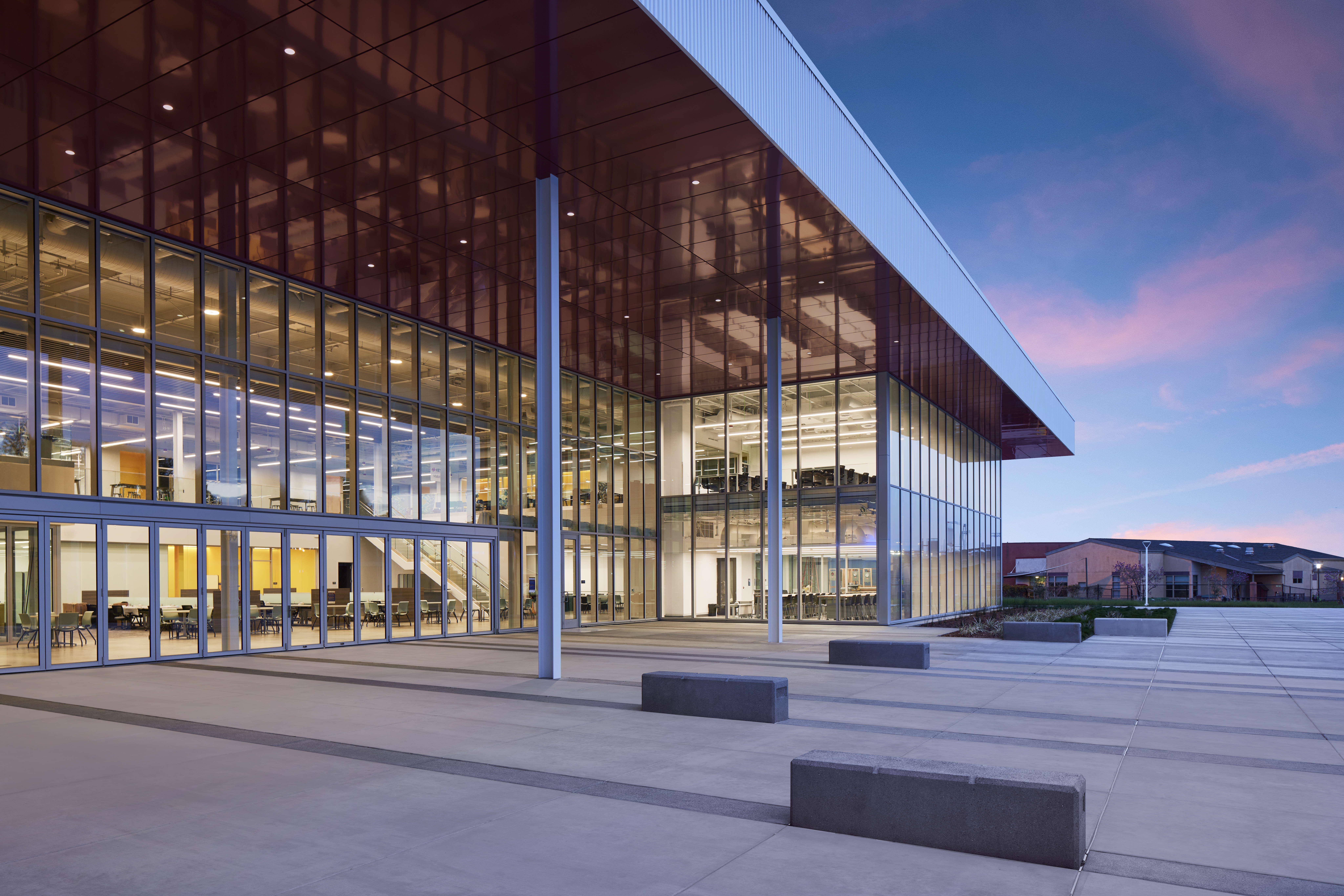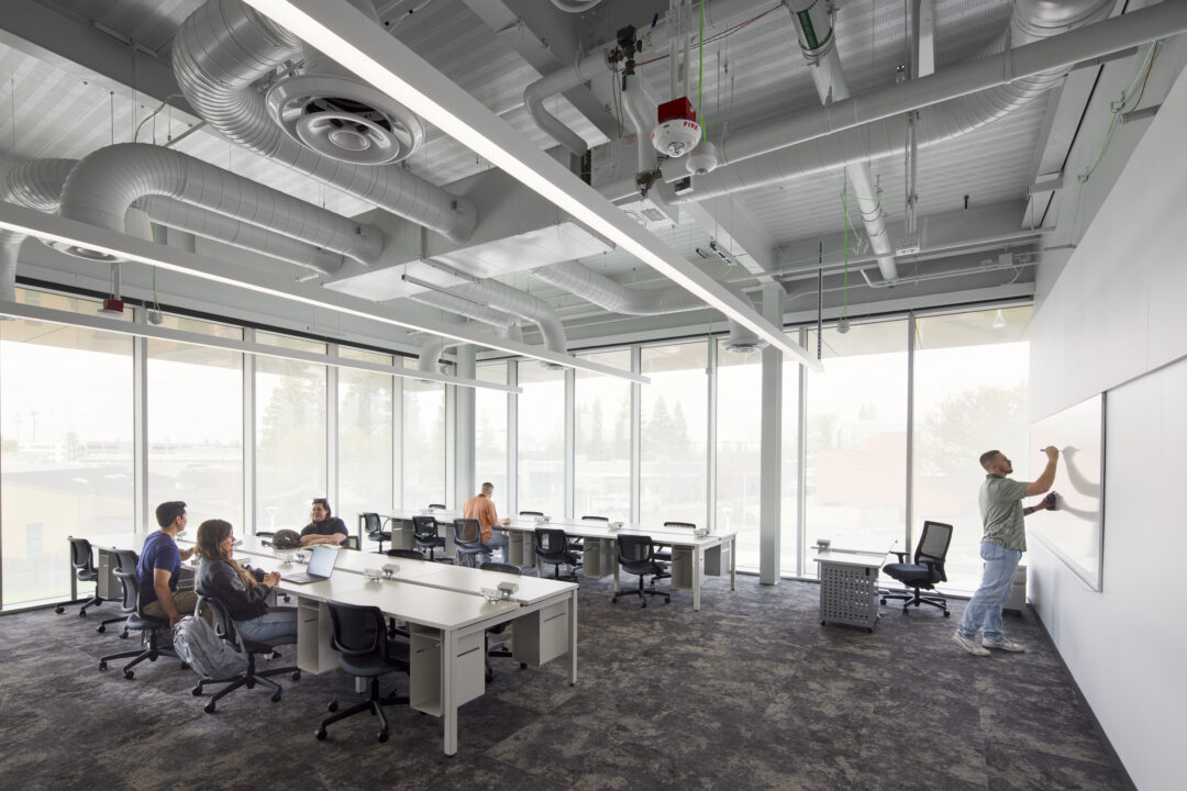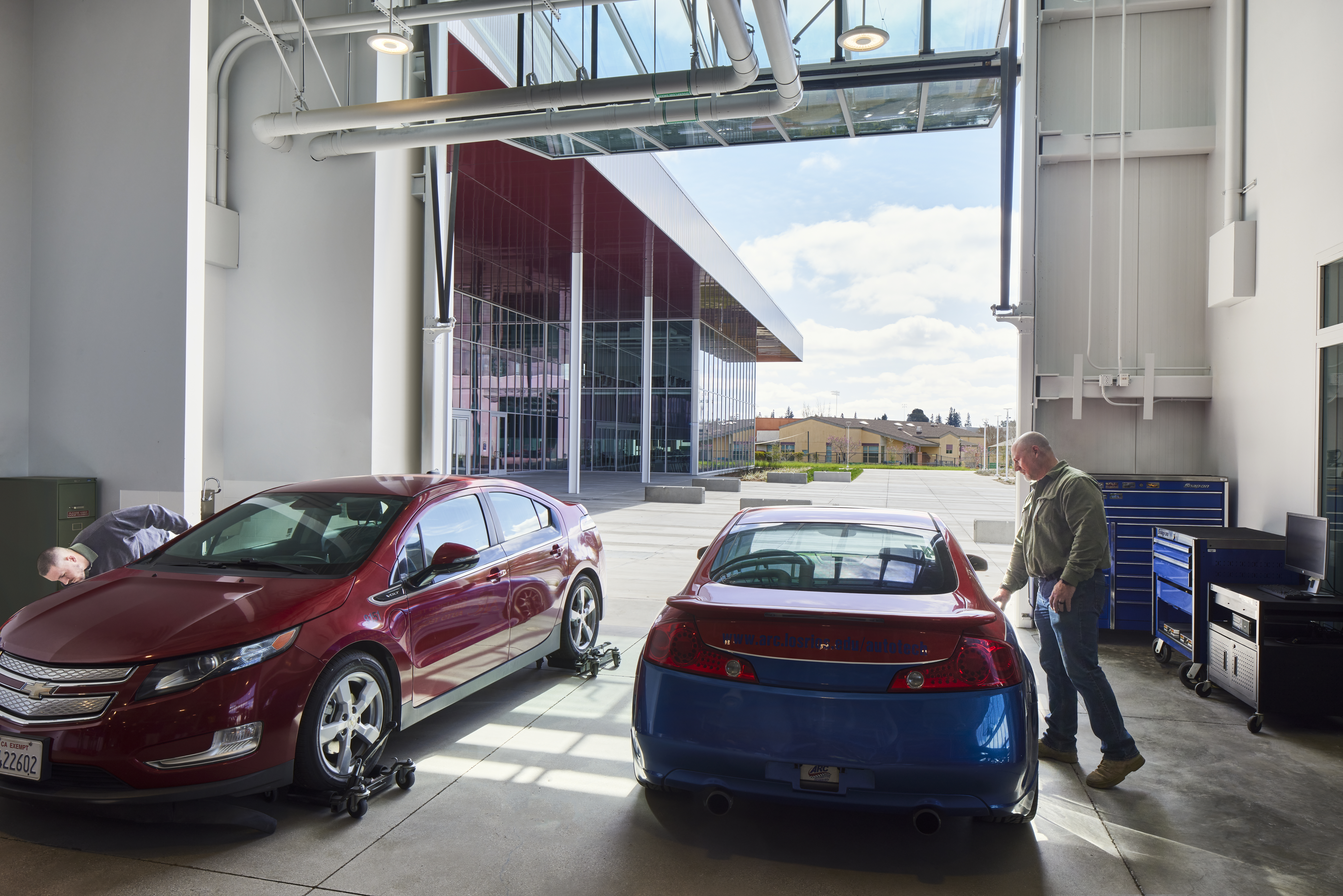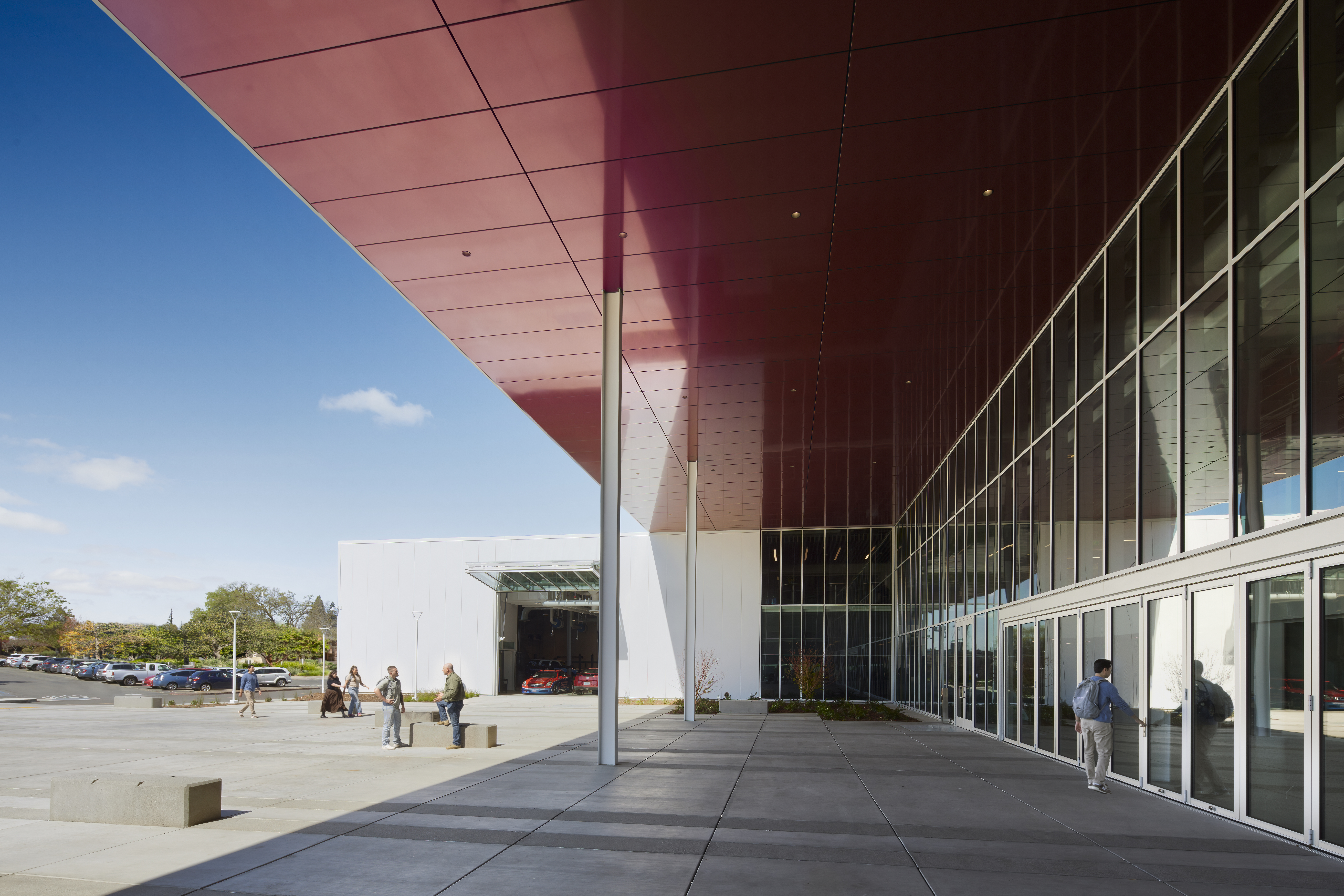 The two-story project, utilizing 100,919 square feet with 26 classrooms and specialized lab spaces offers specialized learning opportunities such as: a state-of-the-art automotive shop, welding booths and machine shop, electronics and soldering labs, and solar energy training. Also offering a unique opportunity by way of a Funeral Services Suite which includes a fully operational mortuary, embalming room, reception area and chapel. Additional amenities include a Design and Technology Hub, Maker Space, and video and audio recording studio.