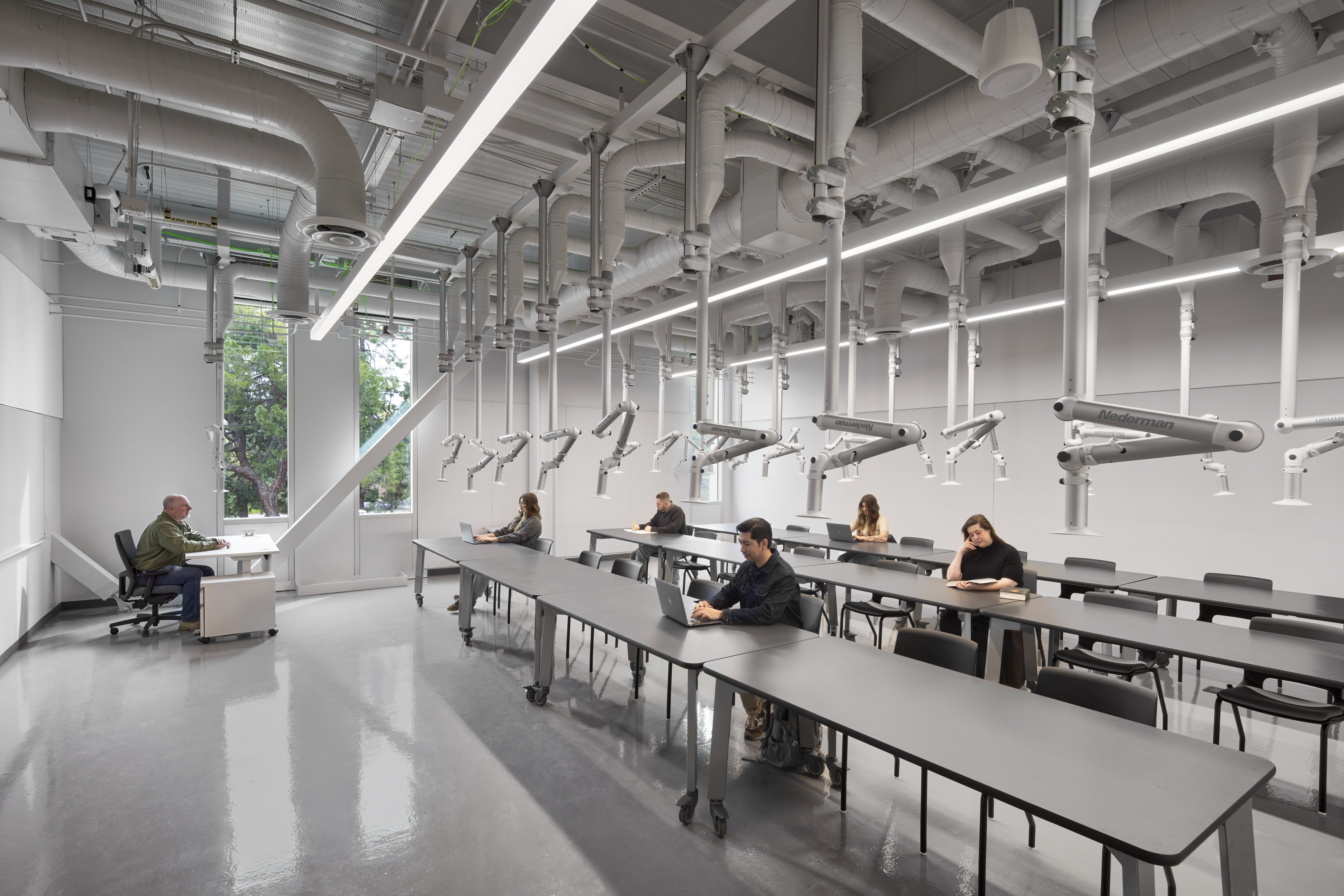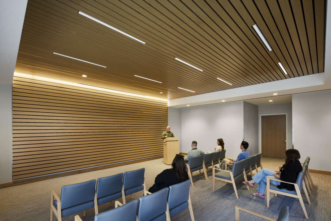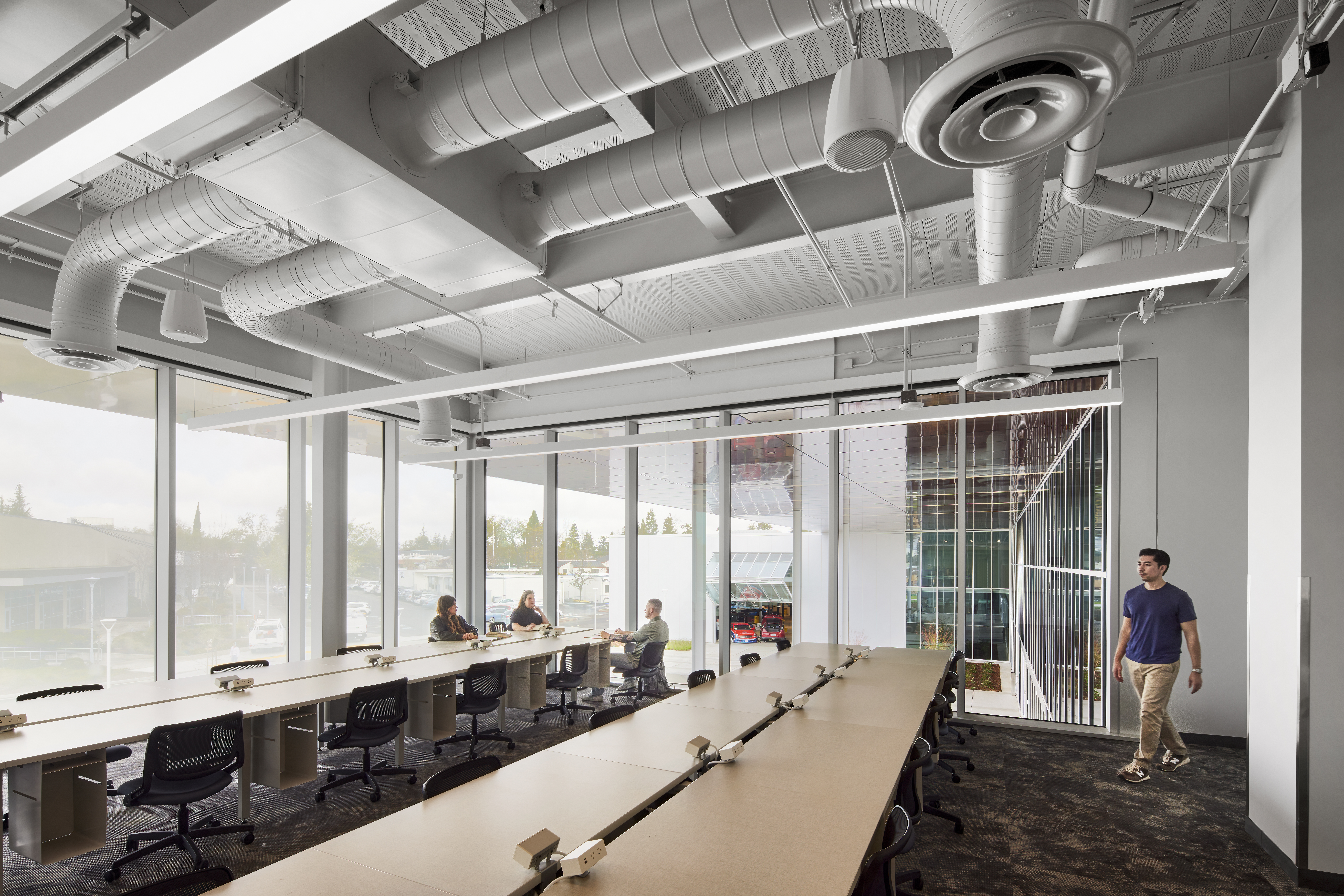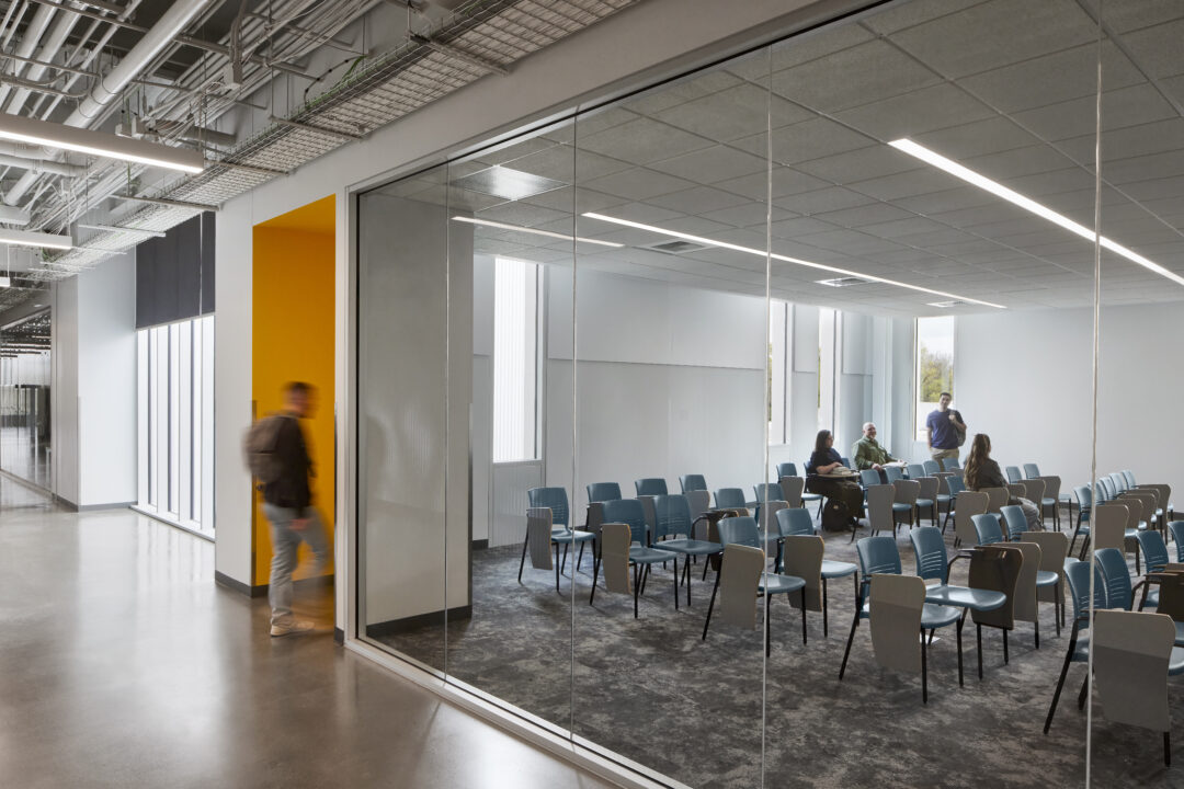 The two-story project, utilizing 100,919 square feet with 26 classrooms and specialized lab spaces offers specialized learning opportunities such as: a state-of-the-art automotive shop, welding booths and machine shop, electronics and soldering labs, and solar energy training. Also offering a unique opportunity by way of a Funeral Services Suite which includes a fully operational mortuary, embalming room, reception area and chapel. Additional amenities include a Design and Technology Hub, Maker Space, and video and audio recording studio.