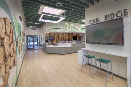 With 53,300 square-feet of new building space, this project consists of a two-story classroom building with kindergarten, preschool, art, and new library. Also featured is a community engagement center supporting professional development, families and caregivers. A new U14 soccer field, hardcourts, and play structures replaces some of the original building footprint, along with multiple new shade canopies. Expansions to the drop-off lane increased traffic flow, adding an intersection with a street light for safety.